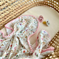 A beautiful baby bonnet crafted with newborns in mind. The bonnet is made from organic cotton, surrounds the little head, and fully covers the ears for warmth and comfort.