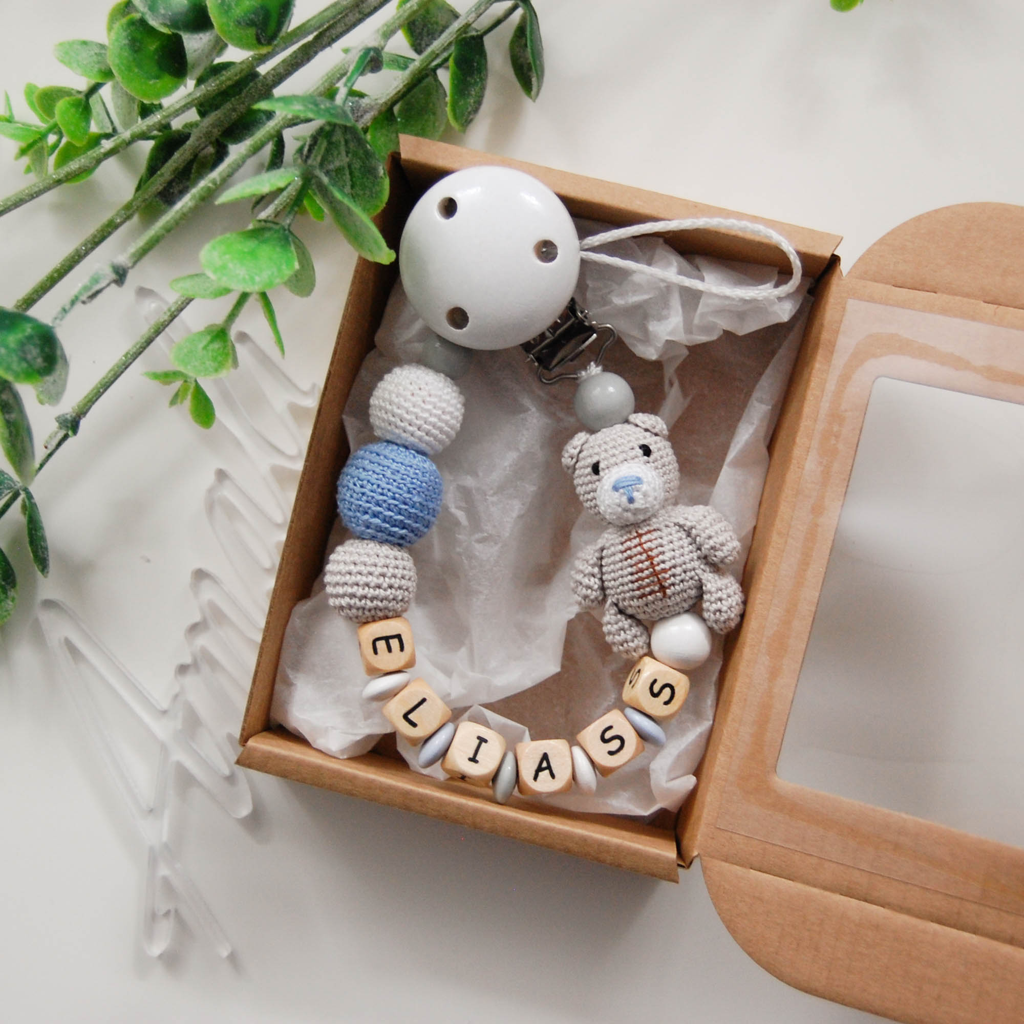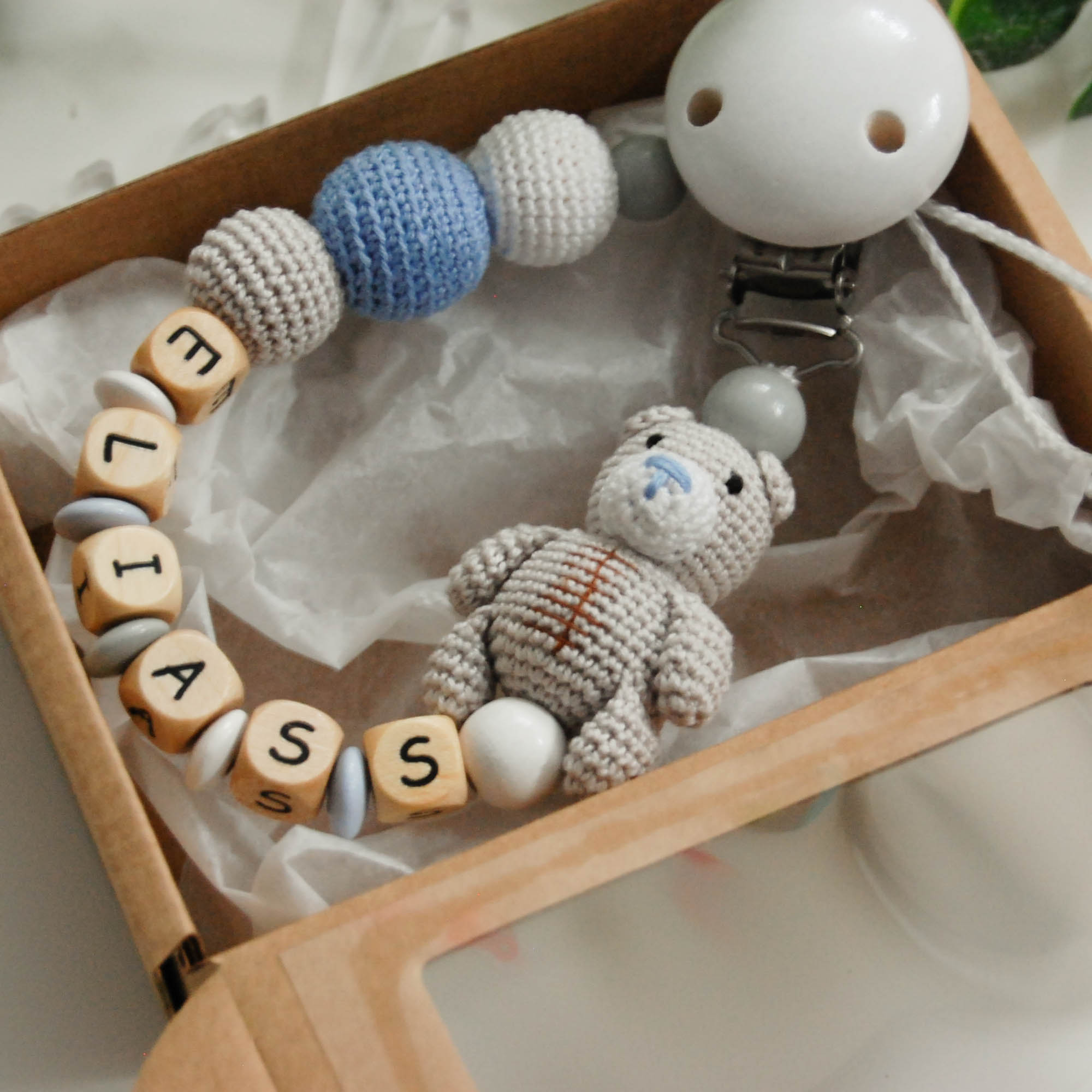 Personalizēts knupīša turētājs ar Lāčuku -gaiši zils