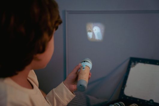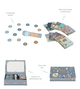 Projektora lukturītim ir izturīgs koka rokturis un tas darbojas ar baterijām (nav iekļautas), tāpēc to var ņemt līdzi jebkur. Pēc stāsta izstāšanās lukturīti un visus piederumus var glīti uzglabāt skaistā uzglabāšanas kastē . Lieliska izvēle bērniem, kuriem patīk atklāt un izbaudīt stāstus pašiem!