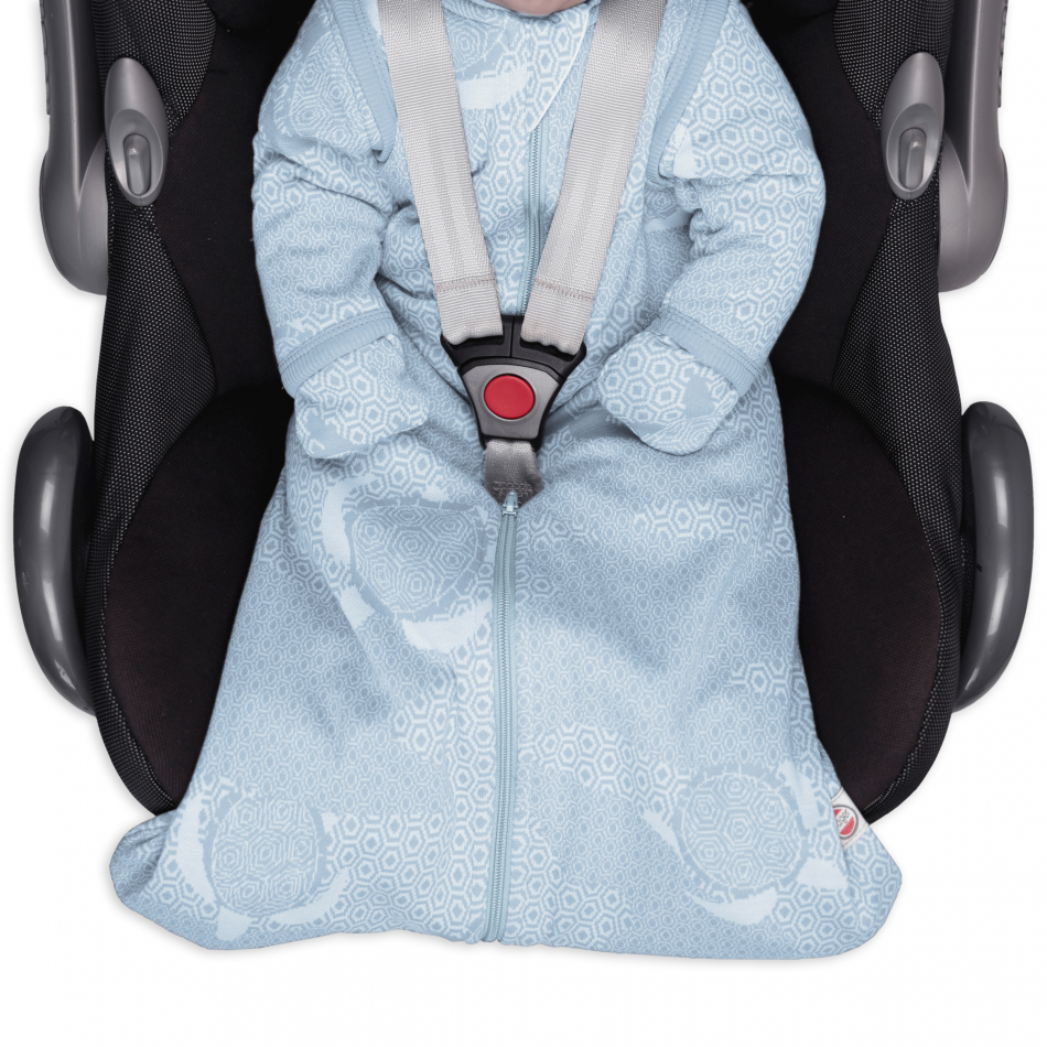 Viedais rāvējslēdzējs ar trim stiprinājumiem sniedzas līdz pat aizmugurei. Tas ļaus jums viegli pārģērbt mazuli viņu nepamodinot. Turklāt šis bērnu guļammaiss ir piemērots lietošanai arī automašīnas sēdeklītī. Ideāli piemērots lietošanai ceļā: ielieciet bērnu gultā tieši no automašīnas, nepārģērbjot.