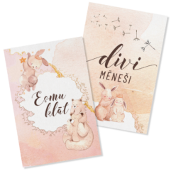 Kartiņas ir abpusējas. No vienas puses datums akvareļu dizainā. Otrpus vieta īpašām atmiņām un piezīmēm pa mazuļa augšanu.