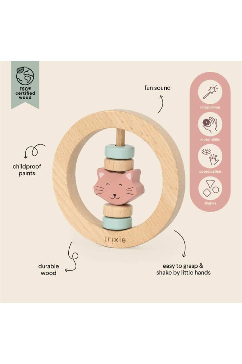 Trixie apaļā koka rotaļlieta atklās mazulim dzīvespriecīgo spēļu pasauli.