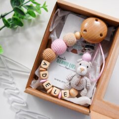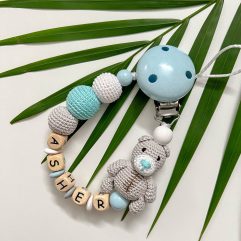Personalizēts knupīša turētājs ar Lāčuku – Pelēks