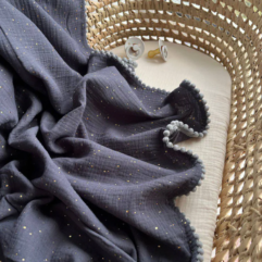 Muslīna sedziņa Zelta kolekcija – punkti uz tumši pelēkā